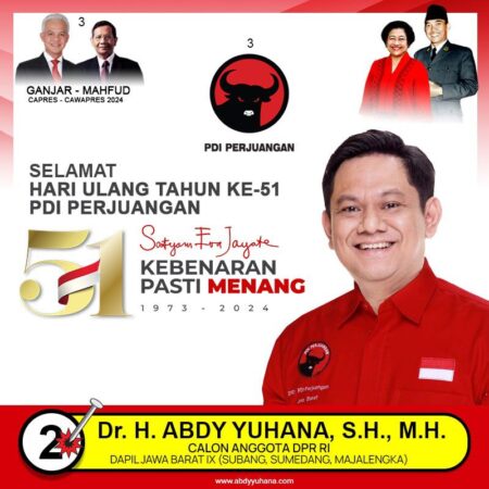 Sehubungan dengan HUT PDI Perjuangan tersebut, anggota DPRD Jabar, Dr. Abdy Yuhana, SH., MH., menyebut bahwa peringatan HUT Partai ini sebagai sarana refleksi bersama, seperti kaca benggala.