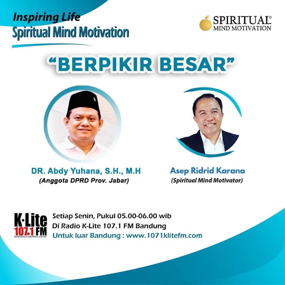 Inspiring life; spiritual mind motivation “berpikir Besar”by adminJuly 19, 2020July 19, 2020 Radio K-Lite 107.1 FM BandungSenin Pukul 05.00-06.00 WIB Tags:#Abdy_Yuhana#AY Leave a Reply Cancel replyYour email address will not be published. Required fields are marked *Comment * Name * Email * Website Save my name, email, and website in this browser for the next time I comment. previousMusancab PDI Perjuangan Kabupaten IndramayunextPolitik Hukum