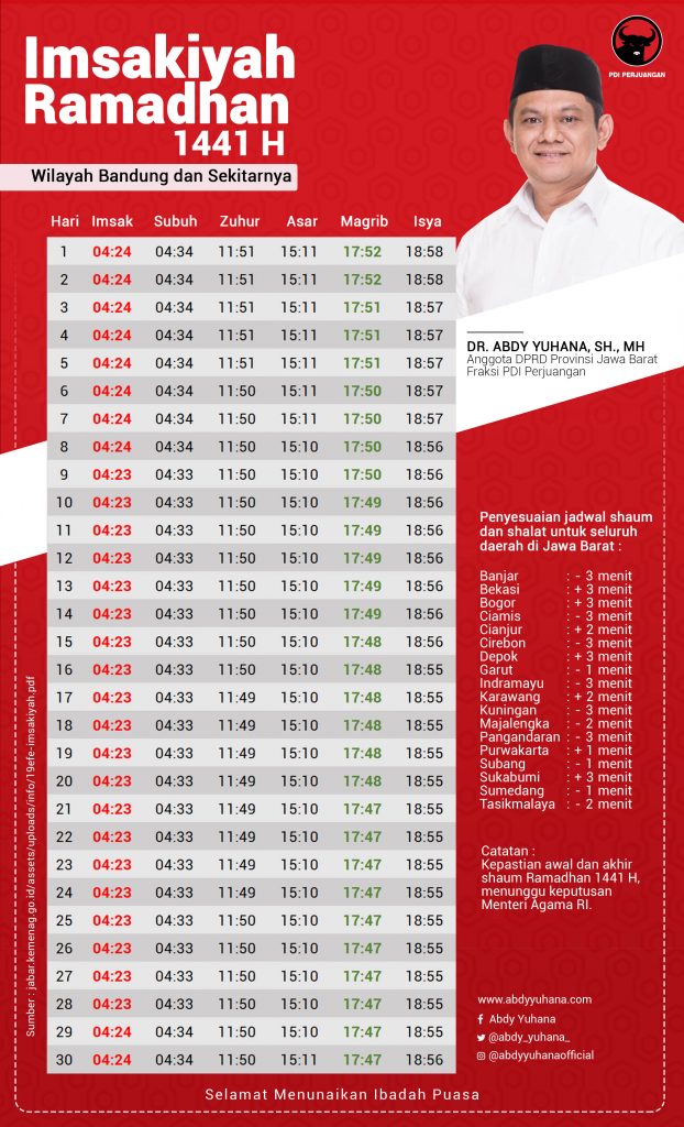 Jadwal Imsakiyah Ramadhan 1441 Hby adminApril 23, 2020April 23, 2020 Tags:#AY#PDIPerjuangan#Ramadhan1441H Leave a Reply Cancel replyYour email address will not be published. Required fields are marked *Comment * Name * Email * Website Save my name, email, and website in this browser for the next time I comment. previouskuliah umum pancasila dalam kaderisasi taruna merah putihnextSelamat Hari Pendidikan Nasional 2020