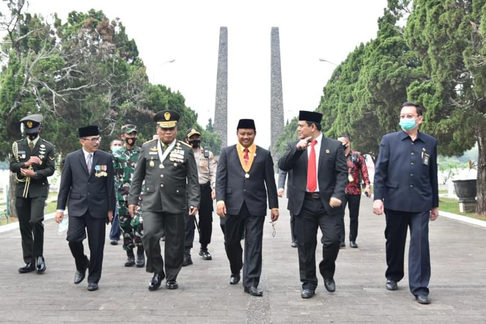 Bandung – Anggota Komisi I DPRD Provinsi Jawa Barat, Abdy Yuhana, menghadiri acara Ziarah Nasional dalam rangka peringatan HUT ke-75 TNI tahun 2020, acara berlangsung di TMP Cikutra Kota Bandung. (Jumat, 2/10/2020).